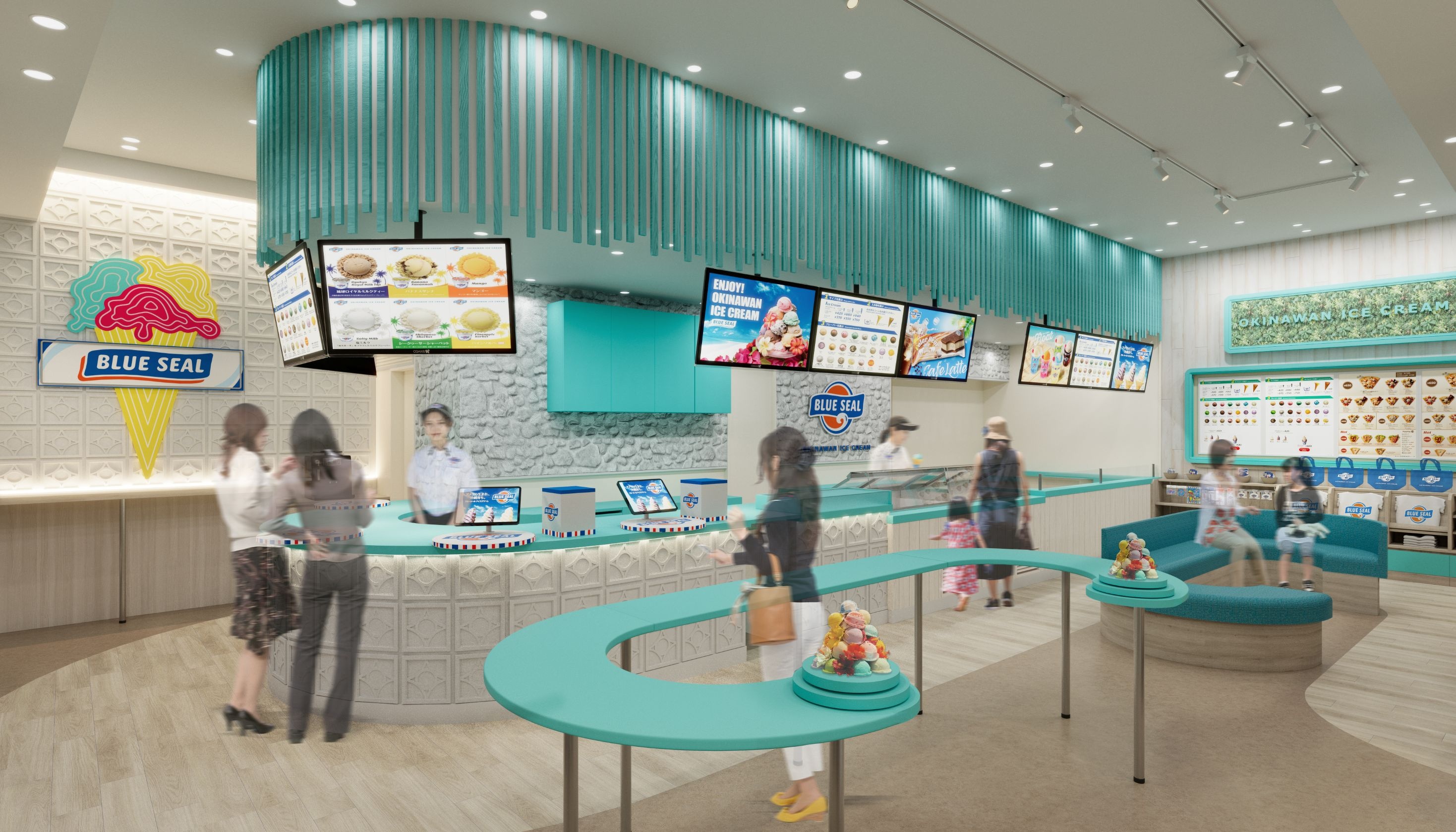 当社9店舗目となるブルーシール店の中で、初めての本格イートインスペース(約30席以上)を完備しております。
